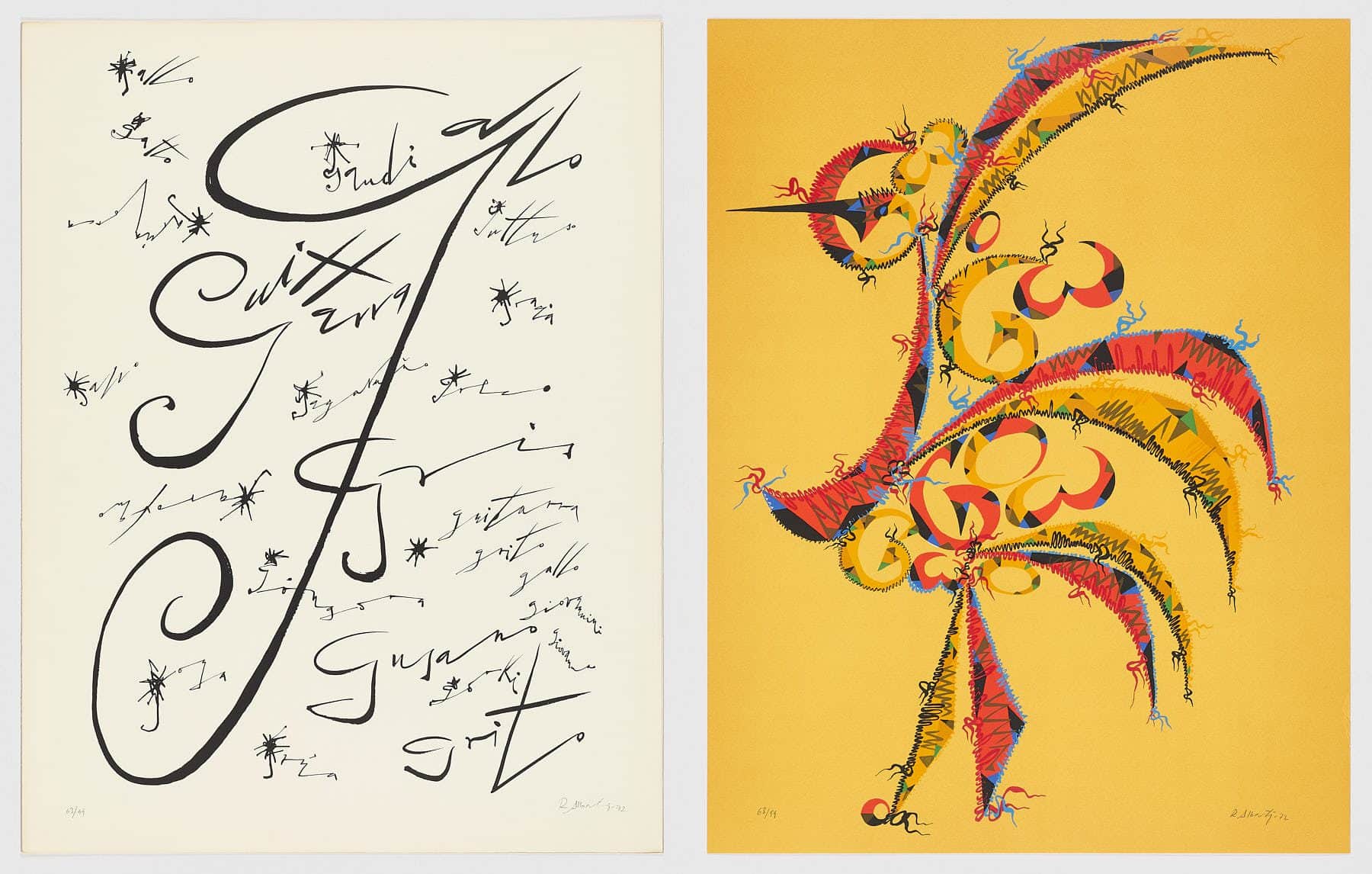 La obra «Il lirismo dell’Alfabeto» de Rafael Alberti, en la que se representa la letra «G», forma parte de una serie donde el poeta y artista explora la poética visual de las letras. Rafael Alberti, uno de los miembros más destacados de la Generación del 27, utiliza en esta serie la caligrafía y el color para dar vida a cada letra del alfabeto, transformándolas en composiciones artísticas.