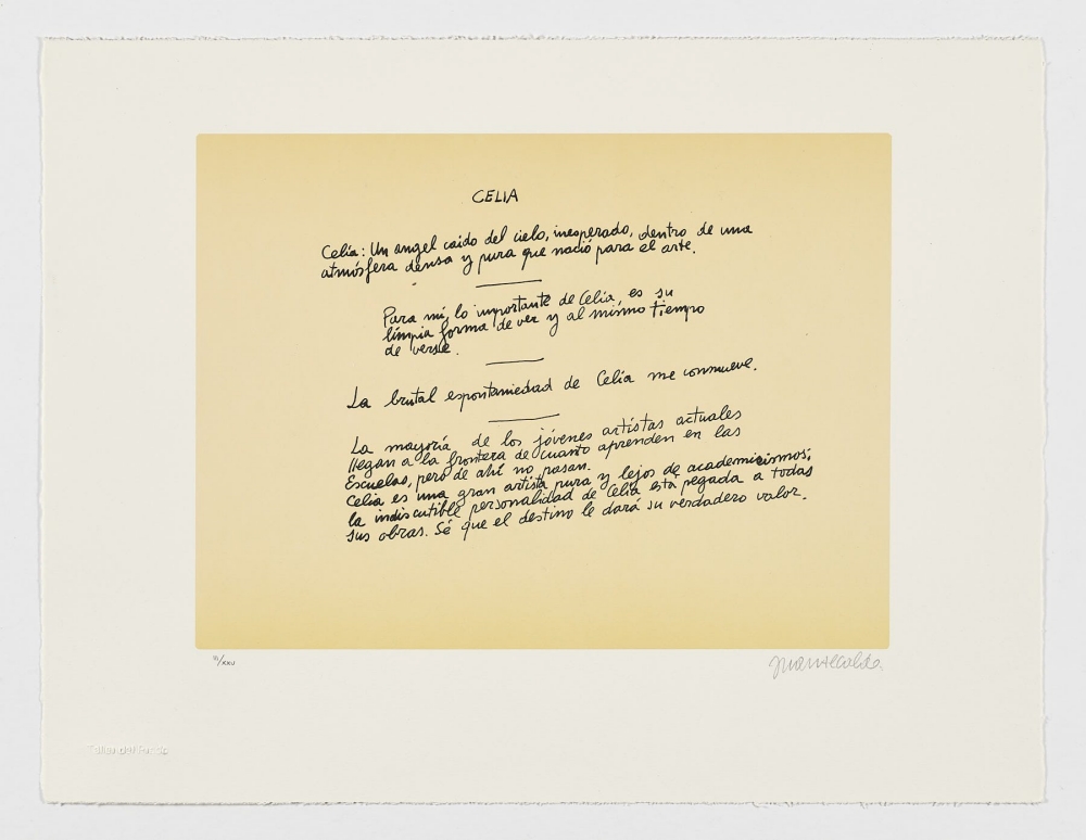 «Celia: un ángel caído del cielo, inesperado, dentro de una atmósfera densa y pura que nació para el arte» Juan Alcalde.