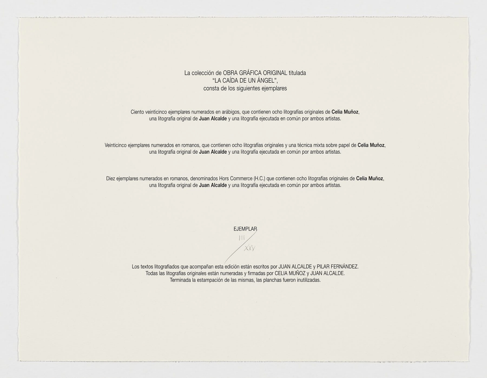 Este libro de artista, auspiciado por el gran artista Juan Alcalde (que también ha colaborado con una obra propia en la colección), es el primer título publicado por la joven pintora, y supone su inicial incursión el mundo de la gráfica, desarrollando todo un mundo de fresca gestualidad e impactante plasticidad.