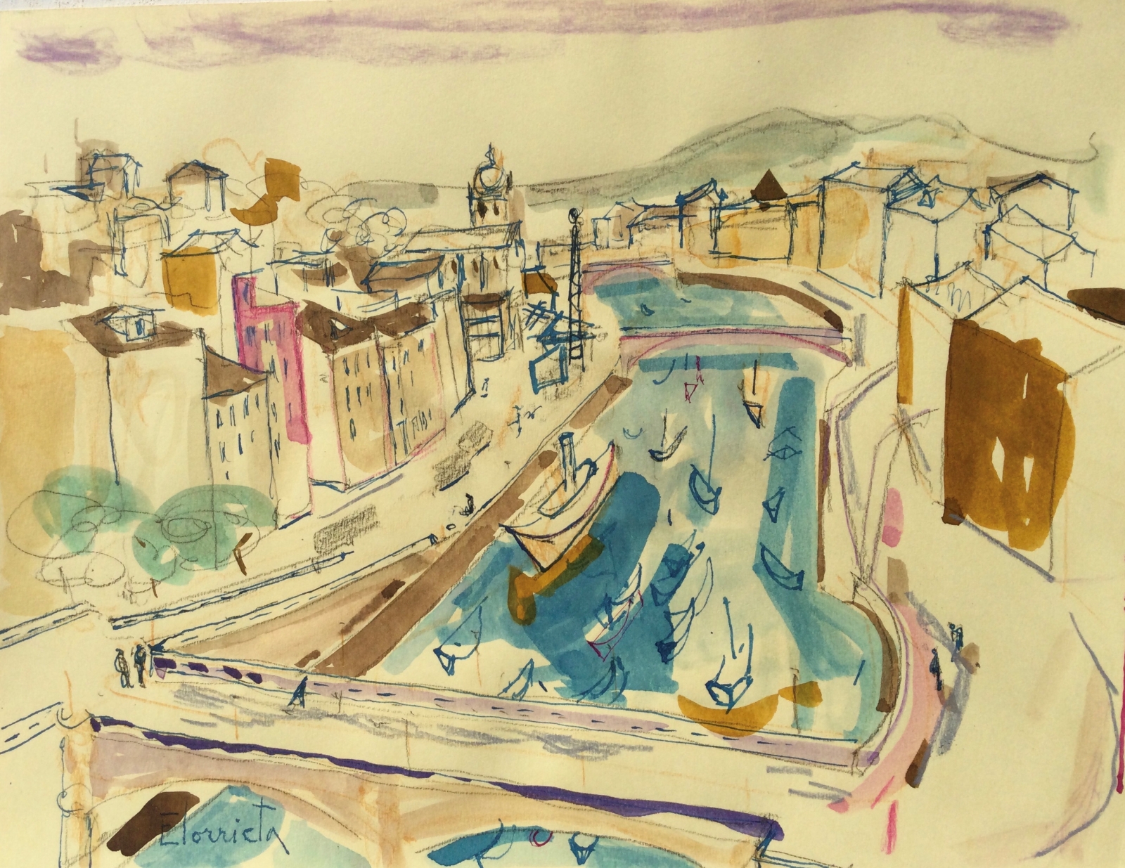 Técnica: Acuarela, Tinta china y Lápiz pastel
